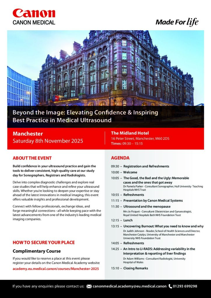 Course places are limited – to ensure that as many of your colleagues can take advantage of the opportunity to attend, delegates may only register for two of our annual UK Ultrasound Educational Events.